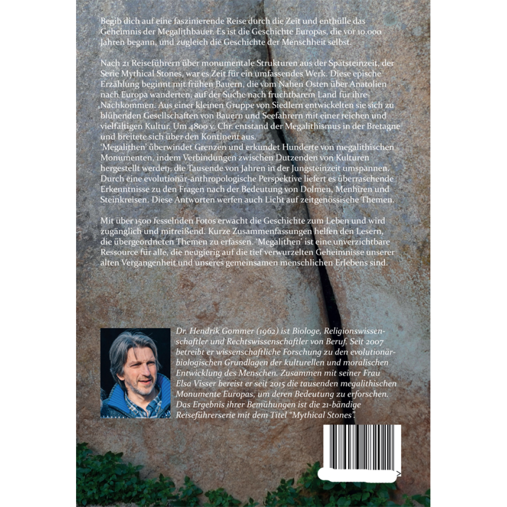 Dr. Hendrik Gommer (1962) ist Biologe, Religionswissen­schaftler und Rechtswissenschaftler von Beruf. Seit 2007 betreibt er wissenschaftliche Forschung zu den evolutionär-biologischen Grundlagen der kulturellen und moralischen Entwicklung des Menschen. Zusammen mit seiner Frau Elsa Visser bereist er seit 2015 die tausenden megalithischen Monumente Europas, um deren Bedeutung zu erforschen. Das Ergebnis seiner Bemühungen ist die 21-bändige Reiseführerserie mit dem Titel “Mythical Stones”.